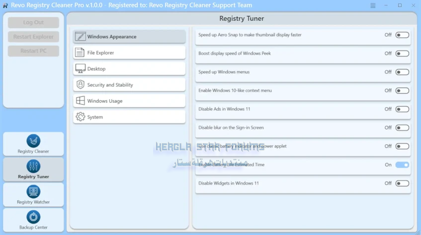1. النسخ الاحتياطي التلقائي: قبل إجراء أي تغييرات، يقوم البرنامج تلقائيًا بإنشاء نسخة احتياطية من أجزاء السجل التي سيعدلها. هذا يسمح لك باستعادة السجل إلى حالته السابقة بسهولة إذا ظهرت أي مشاكل.