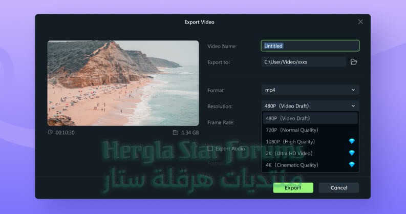 يدعم استيراد وتصدير عشرات الصيغ المختلفة للفيديو (مثل MP4, AVI, MOV, WMV)، والصوت (مثل MP3, WAV)، والصور (مثل JPG, PNG).