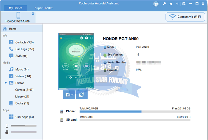 إدارة محتوى هاتف الأندرويد بالكامل من الكمبيوتر سواء عبر كابل USB أو الاتصال اللاسلكي (Wi-Fi)، مع دعم معظم أجهزة الأندرويد.