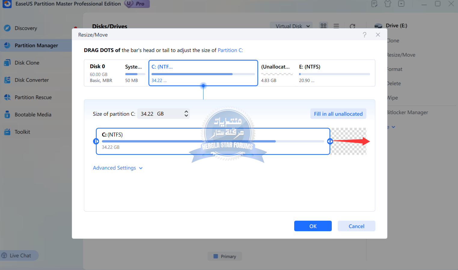 زيادة مساحة قرص C بدون فورمات