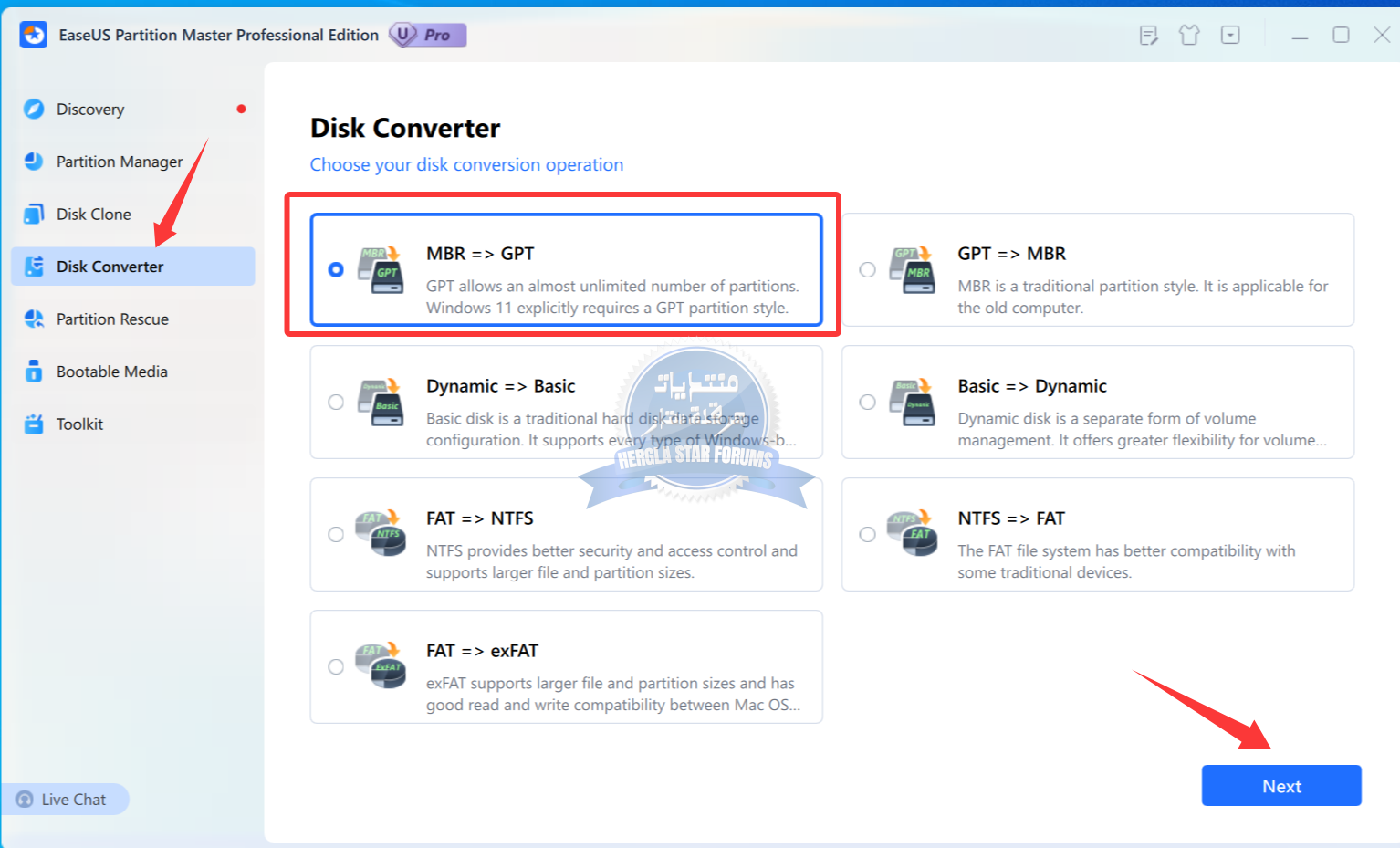 تحويل القرص بين: MBR ↔ GPT