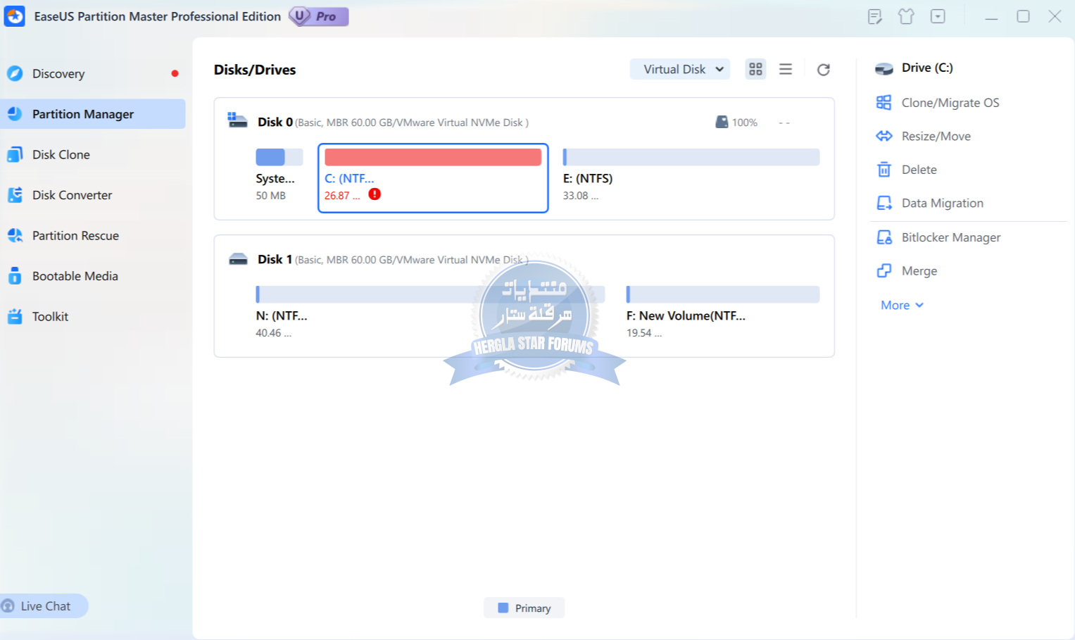 برنامج **EaseUS Partition Master هو أداة متقدمة لإدارة أقسام القرص الصلب (Partition Management) في أنظمة التشغيل، خصوصًا Windows، ويُستخدم لتنظيم وتعديل بنية التخزين بدون فقدان البيانات.