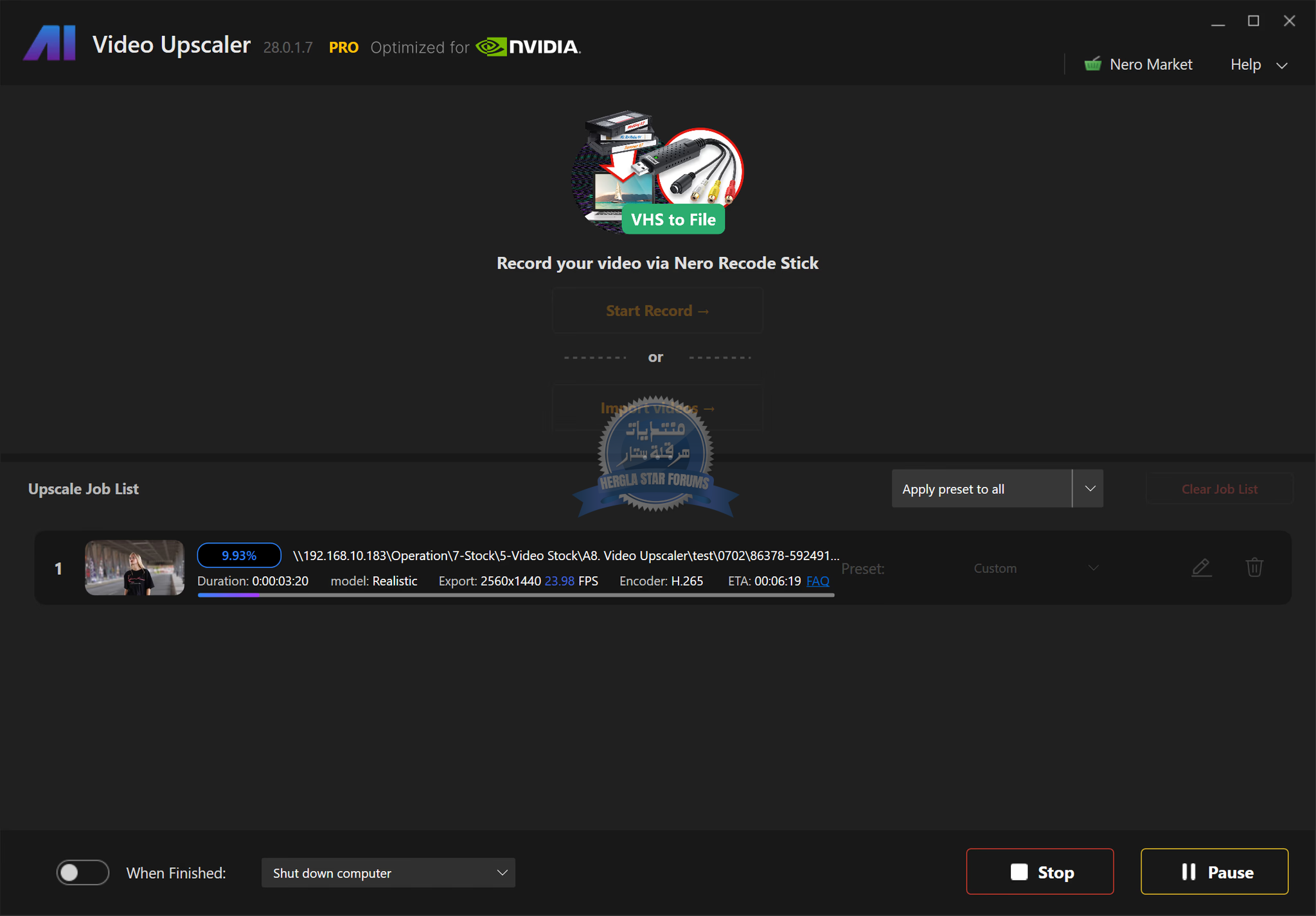 Nero AG يُستخدم لرفع دقة الفيديو (Upscaling) باستخدام تقنيات الذكاء الاصطناعي، بحيث يتم تحويل الفيديو من جودة منخفضة مثل 480p أو 720p إلى جودة أعلى مثل 1080p أو حتى 4K.