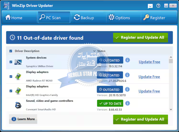 - فحص شامل للتعريفات: يقوم بتحليل جهازك لاكتشاف التعريفات القديمة أو المفقودة.